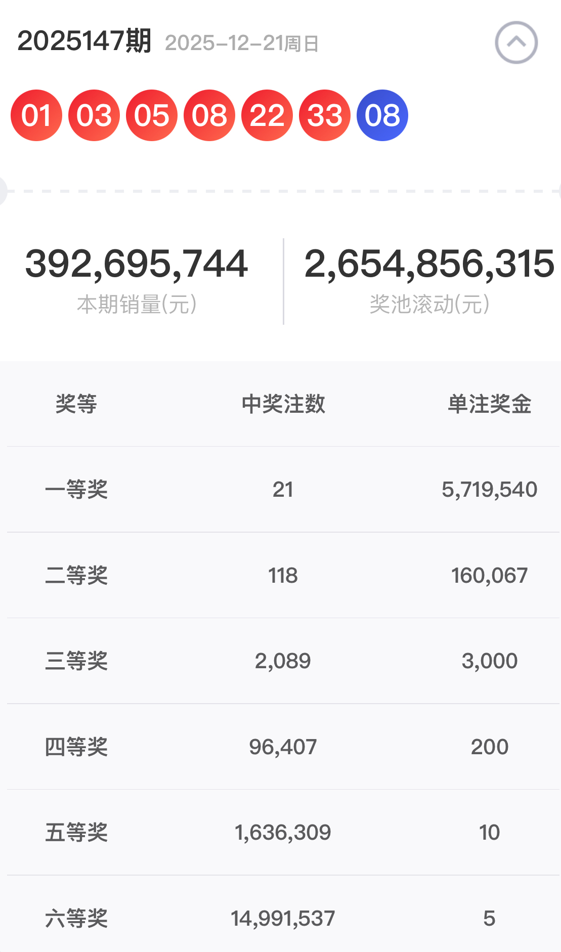 福彩双色球游戏②⓪②⑤147期开奖公告