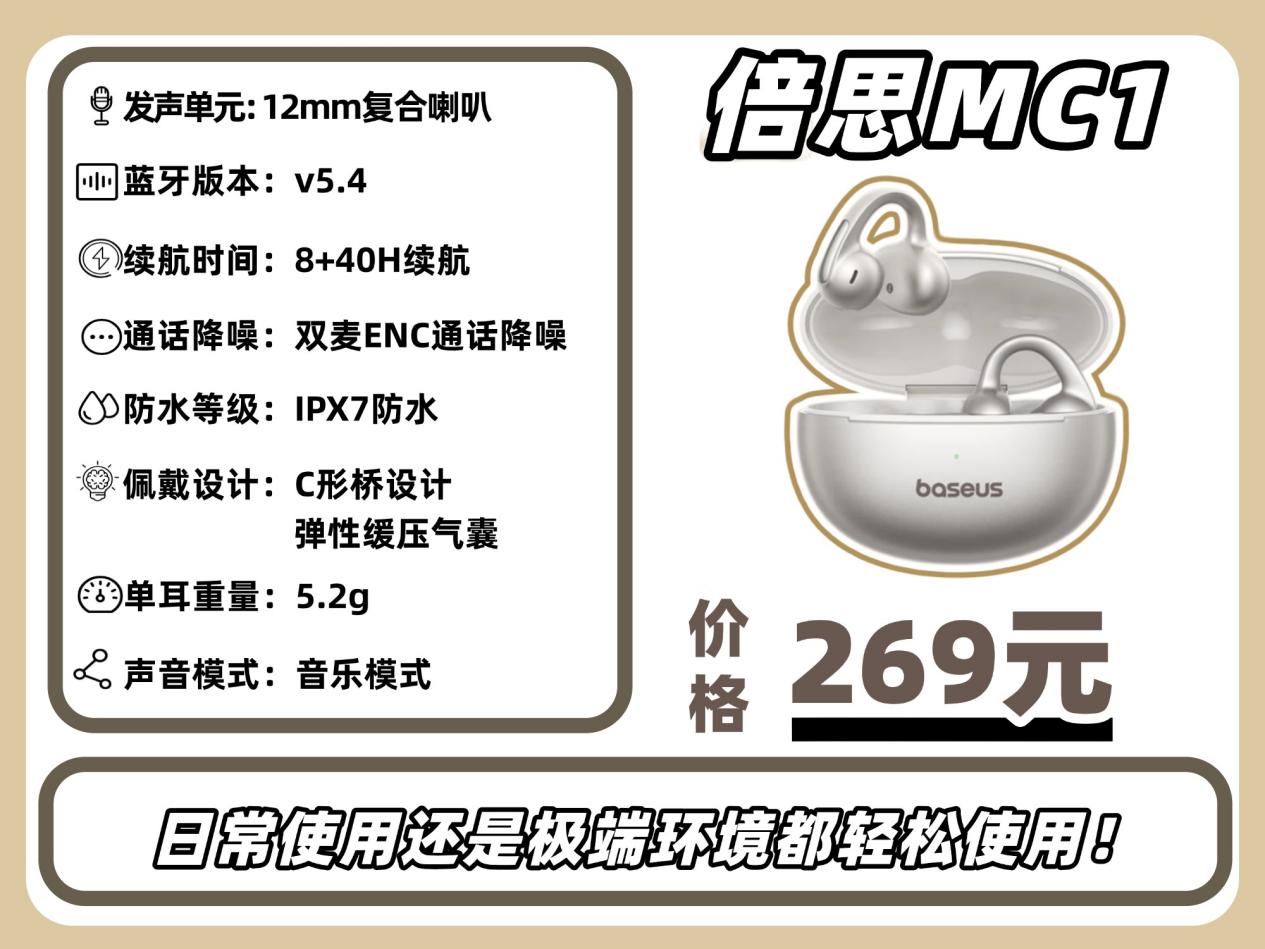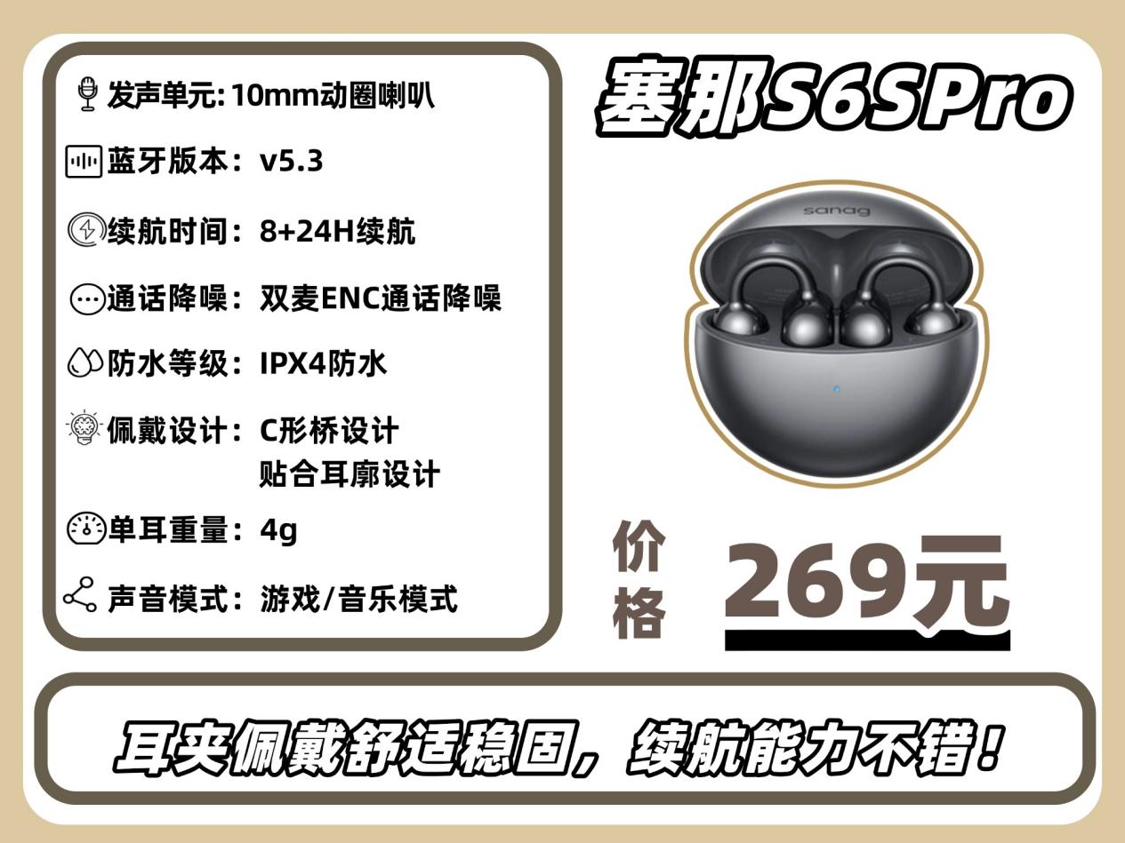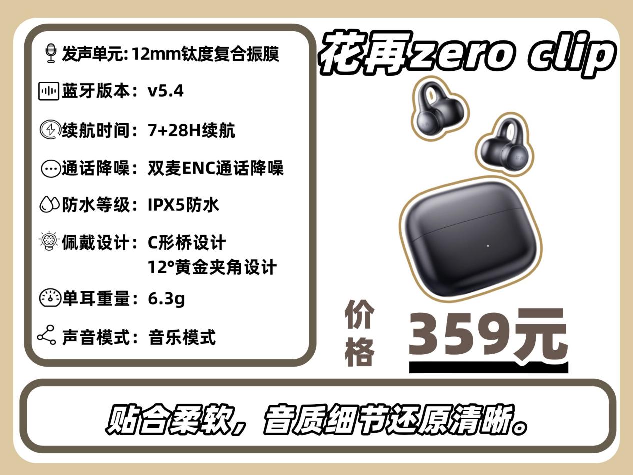 推荐理由:耳夹佩戴舒适稳固,续航能力强!