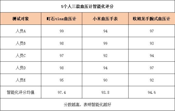 测评方法:找了5个人来测量,测量过程中观察每款设备的功能是否智能,并对智能化进行打分。