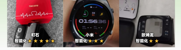 智能化测评结果小结:町石 > 小米 > 欧姆龙町石血压计智能化测评表现我觉得町石在智能化上挺顺手的,几乎没有让我困惑的地方。语音播报声音很清楚,还会贴心地提醒袖带是否正确佩戴,小细节挺贴心的。想查历史数据?轻轻一按就能翻看,非常直观。房颤监测也没问题,我动了几下手臂,它还是能准确提示。整体操作流畅,语音播报、历史数据查看、房颤监测三项功能结合得比较自然,平常用起来挺轻松。小米血压计智能化测评表现小米在智能化上表现算一般,大部分功能都能用。语音播报够响,但语速有点快,有时候要回放一下才听清楚。查历史数据操作简单,但偶尔反应慢一秒左右。房颤监测功能存在,但提醒速度不算快。总体来说,智能化体验比较均衡,适合平时随手测量的人,不求花里胡哨。欧姆龙血压计智能化测评表现欧姆龙智能化感觉还行,没有明显漏洞。语音播报能讲清楚测量数值,但音量和语速都差不多,有时得凑近才能听到。翻历史数据速度一般,操作也直接。房颤监测比较基础,偶尔会漏掉些小变化。总体来看,亮点有限,智能化操作偏保守,平时随便用用还是可以的。