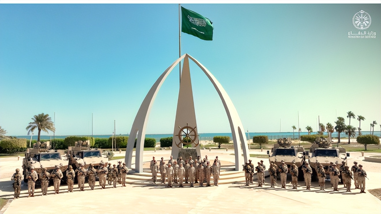 这是中国海军陆战队抵达沙特阿卜杜勒阿齐兹海军基地,准备参与中沙第三次海军联训蓝剑-2025。