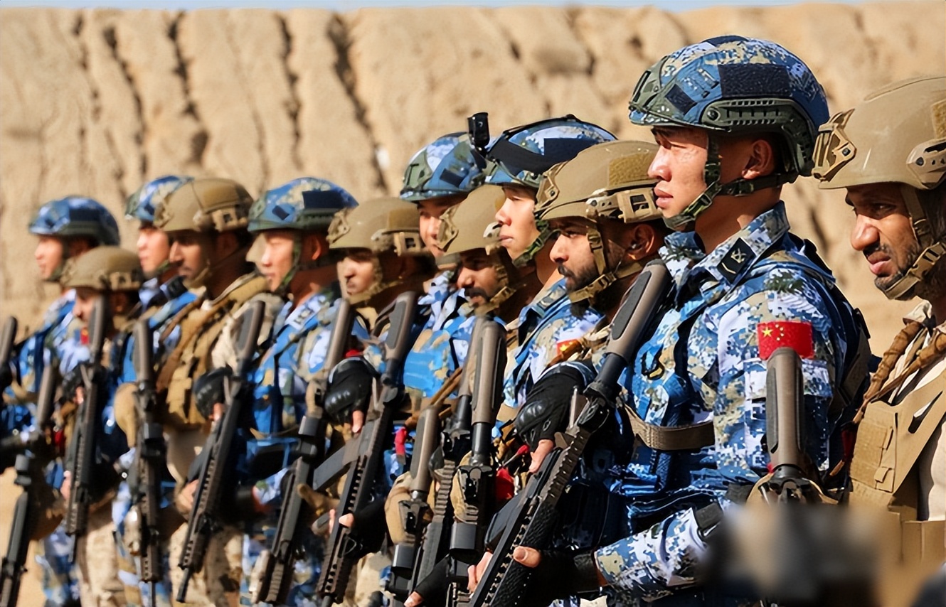 近日沙特国防部发布的一组照片引发国际关注,中国官兵身着21式星空沙漠迷彩臂章上的海军军旗与内搭的海魂衫清晰可见。