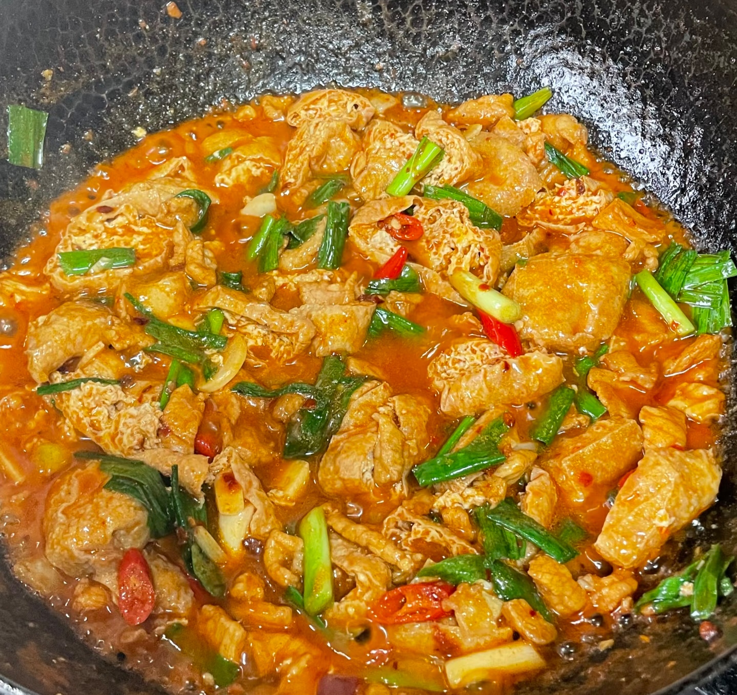 把剩的菜夹进烤冷面,撒把芝士碎空气炸180℃3分钟,瞬间升级东北fusion。或者煮挂面时连汤汁一起浇,豆泡吸饱汤汁后会在舌尖“爆浆”,记得把第一口拍给老妈看。