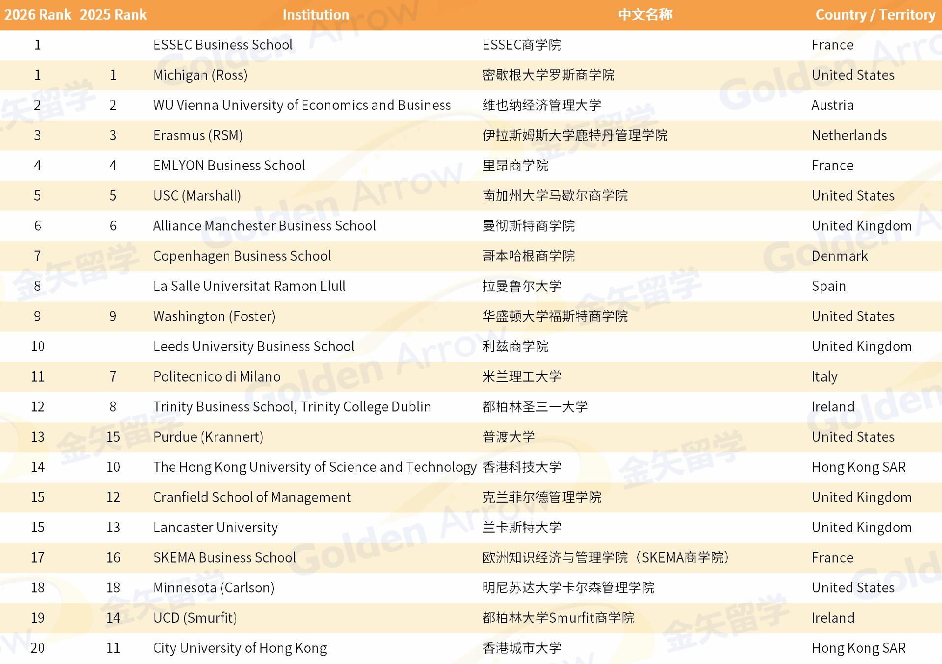 供应链管理硕士排名中,ESSEC商学院与密歇根大学罗斯商学院并列全球第一。