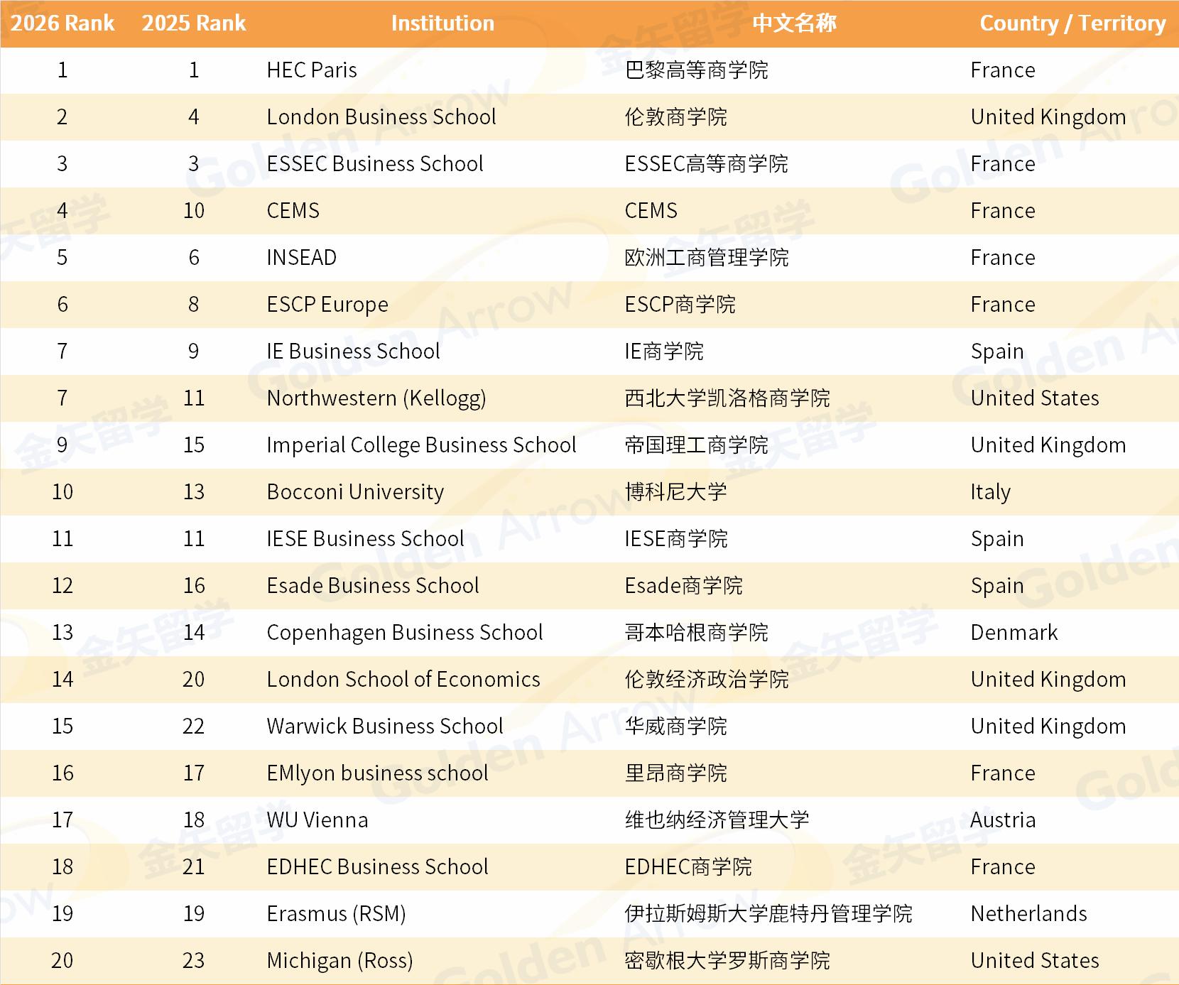 在商科硕士领域,巴黎高等商学院表现亮眼,连续蝉联管理学硕士、金融硕士及市场营销硕士三项排名第一。