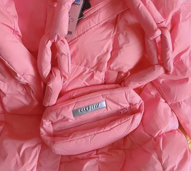 衣服的颜值更没的说,设计得很温柔,颜色粉粉嫩嫩,同时又是最近几年最潮流的宽松运动版型,怎么看怎么让人喜欢。而且还额外送了个独特羽绒包。