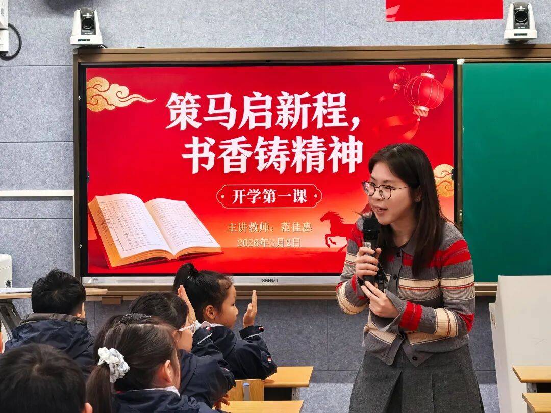 上海市徐汇区教育学院附属实验中学南部分校举行主题为“策马扬帆启新岁 寻脉徐汇向未来”的开学第一课暨开学典礼。学校以“行走的大思政”为核心,通过微视频、学生讲述、校园情景剧,带领师生感受徐汇历史底蕴与时代活力,让思政教育走深走实。“小马心愿卡”环节中,师生们写下新学期目标,凝聚前行力量。