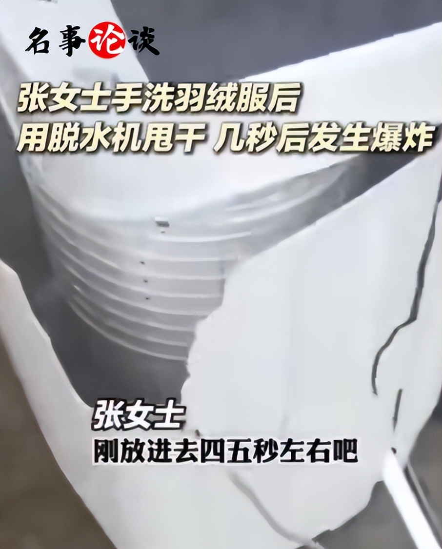 一位女子在家用洗衣机洗羽绒服时,突然听到“嘭”的一声巨响,洗衣机盖子直接被冲开,里面的羽绒服炸成了好几块,洗衣桶也严重变形。更吓人的是,飞溅出来的碎片还划伤了她的脸,差点伤到眼睛!