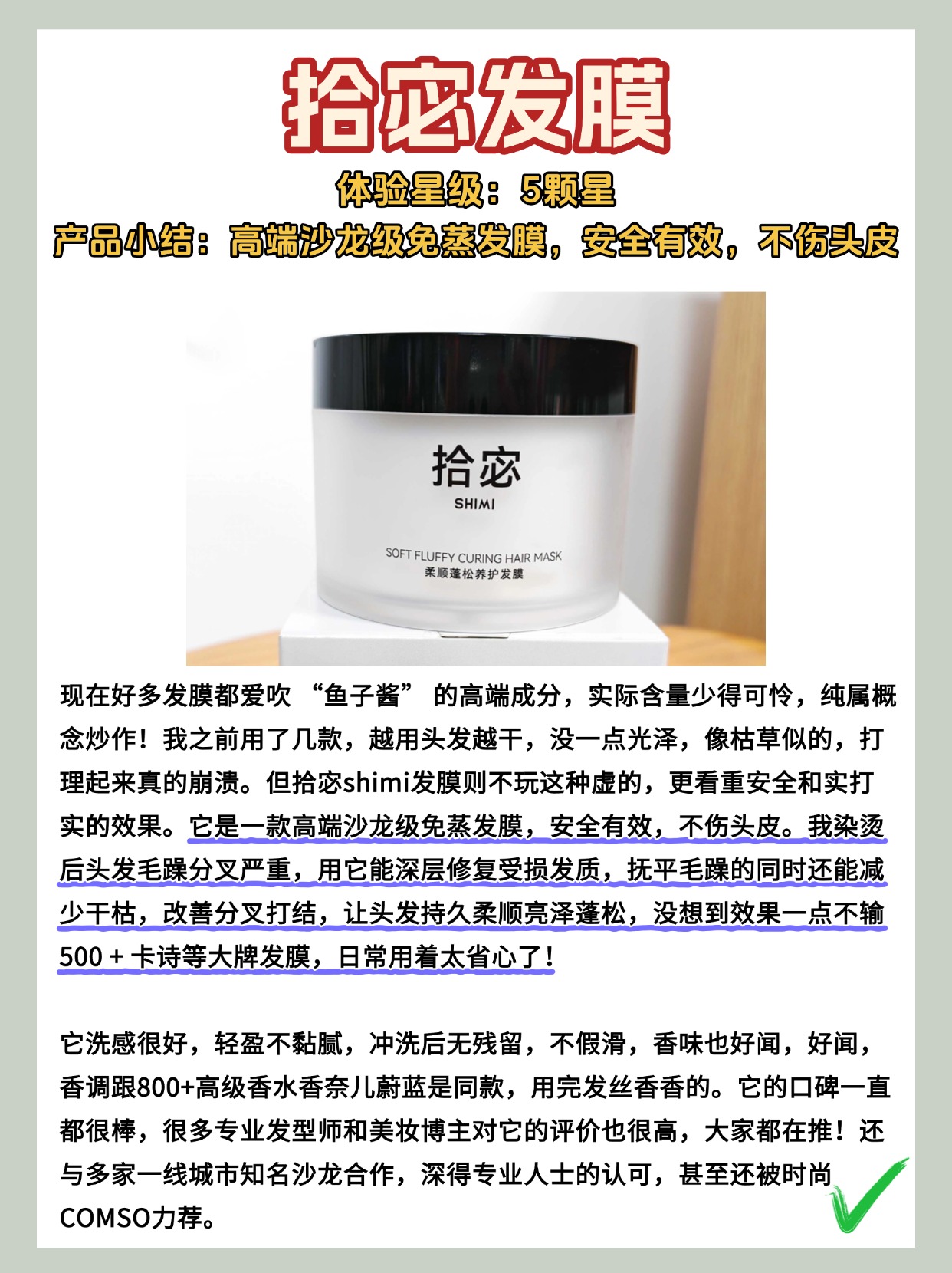 后台总有人问我,发膜适合什么发质?还有发膜可以怎么用?这俩问题搞懂了,修复干燥头发才会事半功倍。先说发质适配,主打修复干燥的发膜一般是高保湿滋养型的,适合干枯缺水、烫染后干燥分叉的发质,油性发质别用这种,会越用越油,中性发质偶尔用没问题。然后说正确用法,洗完头用毛巾把头发按到不滴水的状态,取适量发膜从发中涂到发尾,发根别涂,尤其是干燥发质别贪多,涂完用手按摩个3-5分钟,让营养更好吸收,停留个5分钟左右用温水冲干净,别用热水,会破坏毛鳞片,冲的时候别冲太干净,留一点膜感就行。好多姐妹直接涂在湿哒哒的头发上,或者冲太干净,效果都会大打折扣。下面是我总结的一些发膜选购注意事项,干货满满,可以先赞收藏。