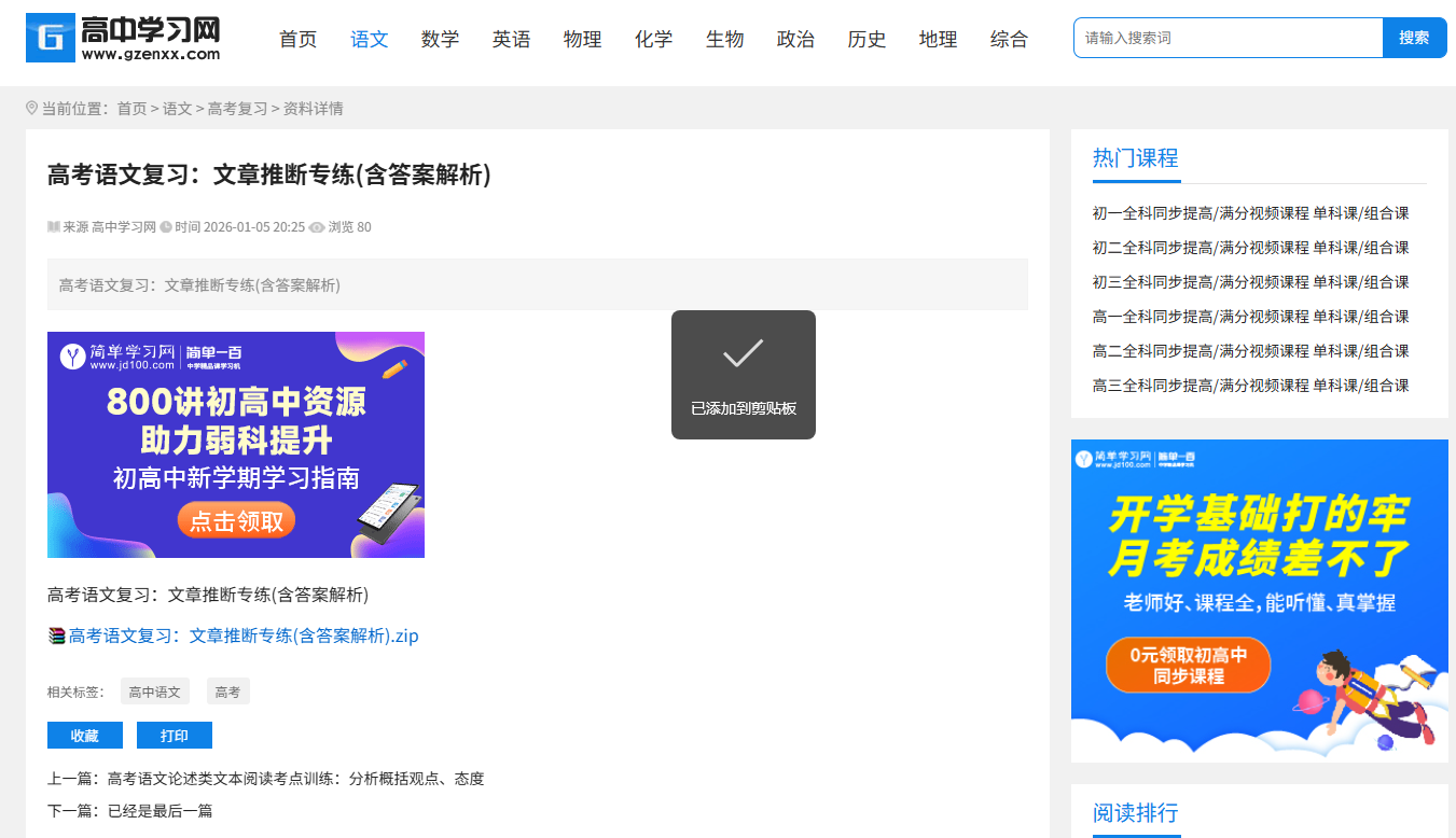 这个网站不管你是高一打基础还是高山冲备考,都能够参考下。