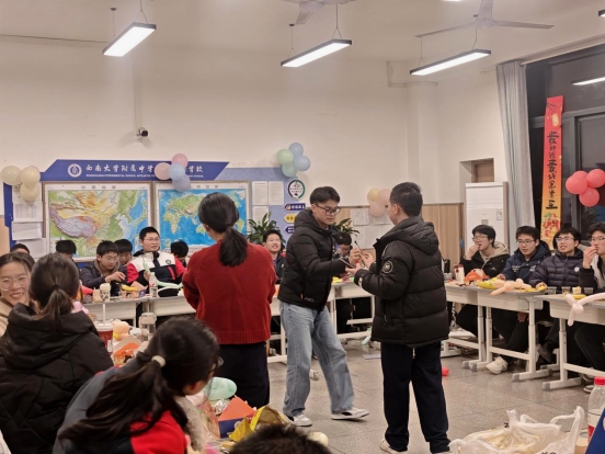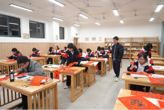 近日,西南大学附属中学荣昌实验学校高2027届举办“风雅颂”非遗传承跨新年活动,以原创春联征集、传统民俗体验、班级元旦晚会等系列活动打造“迎新雅集”,让传统文化浸润校园,用青春活力点亮新春。此次活动将文脉传承、创意表达与师生温情深度融合,成为学校文化育人的生动实践。