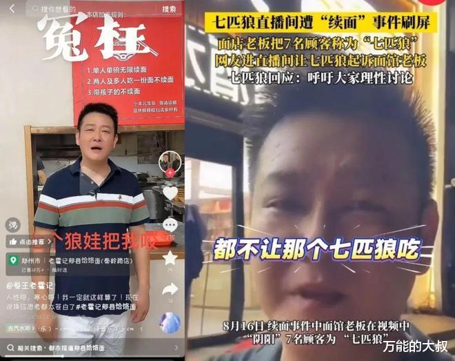 面馆老板在视频中,还“阴阳”7名顾客为“七匹狼”。