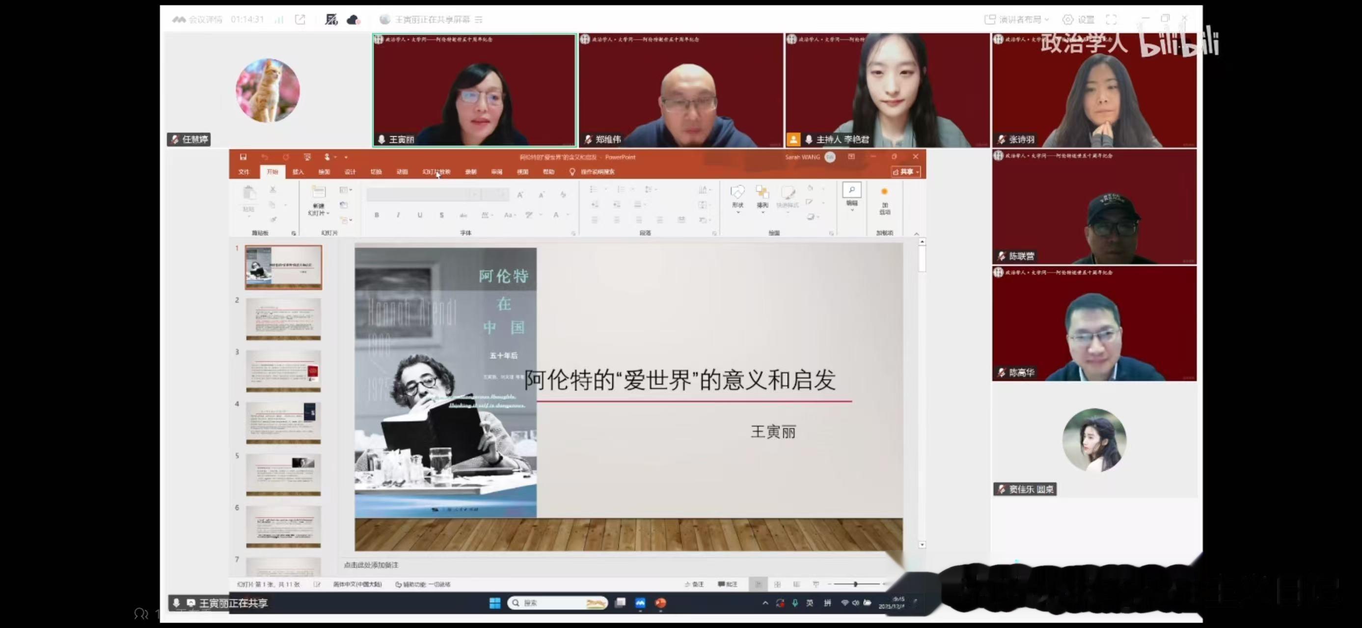 《人的境况》一书的译者王寅丽在“政治学人”举办的“纪念阿伦特逝世50周年”线上研讨会上发言