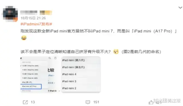一而再再而三地看到iPad mini挤牙膏、砍三刀,消费者的吐槽声自然越来越多。