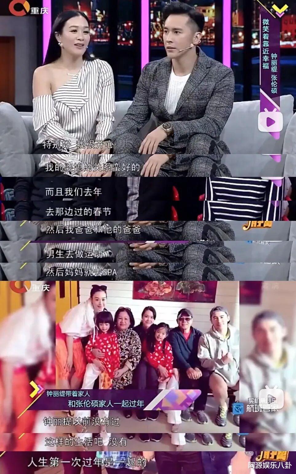 在和张伦硕结婚之前,钟丽缇的家人过年时很难聚在一起。但他俩结婚后,两家人感情非常融洽,连过年也是一起过。