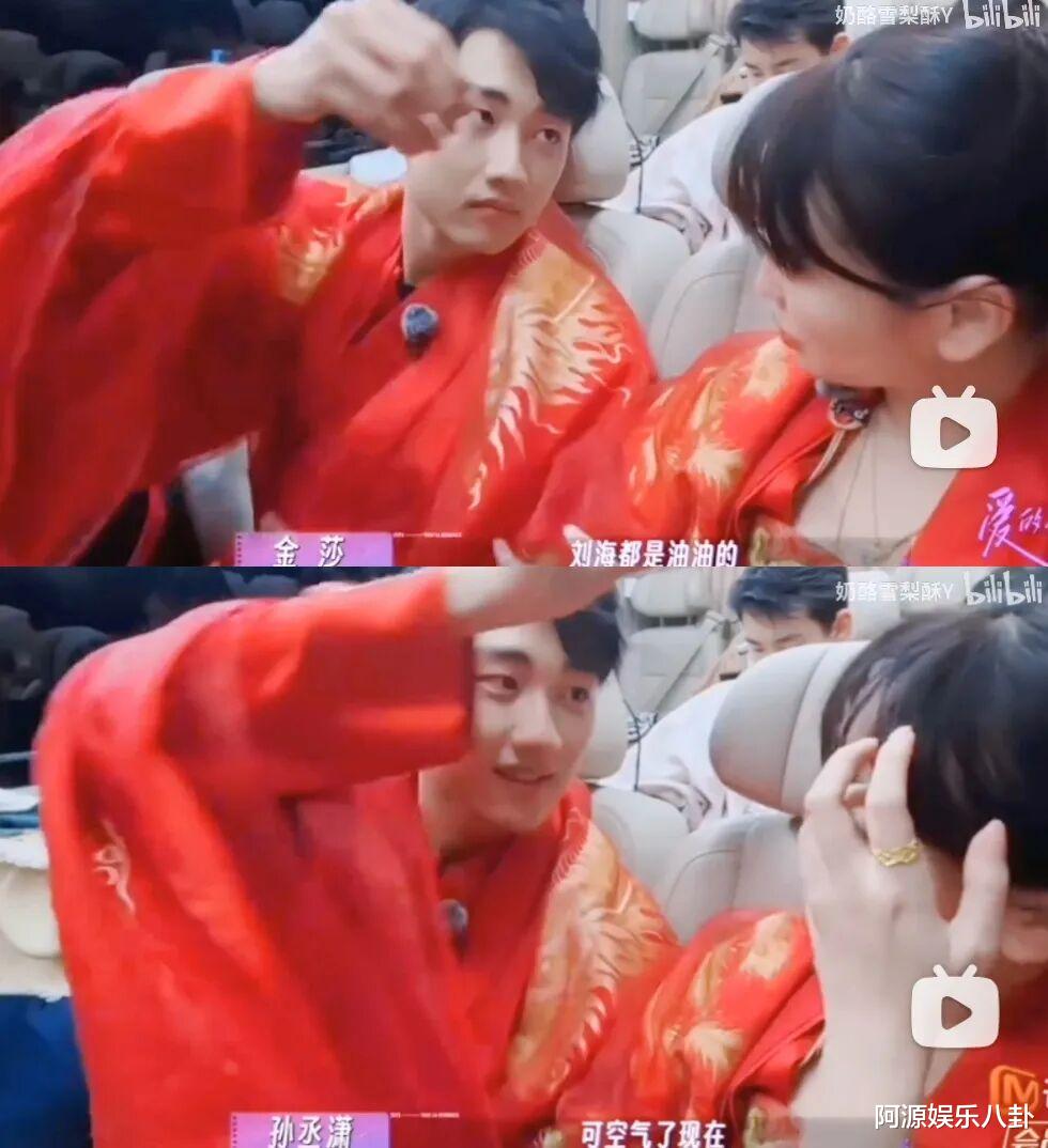金莎说自己刘海油了,孙丞潇一秒上手变成造型师:“现在是空气刘海了。”