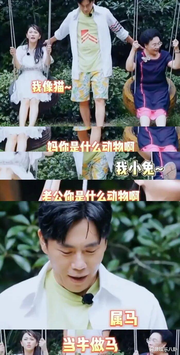 伊能静和婆婆处的情同姐妹:啊,我像小猫,妈像小兔,老公你像什么啊?秦昊一个无情的荡秋千机器:我属马,给你俩当牛做马。笑死。