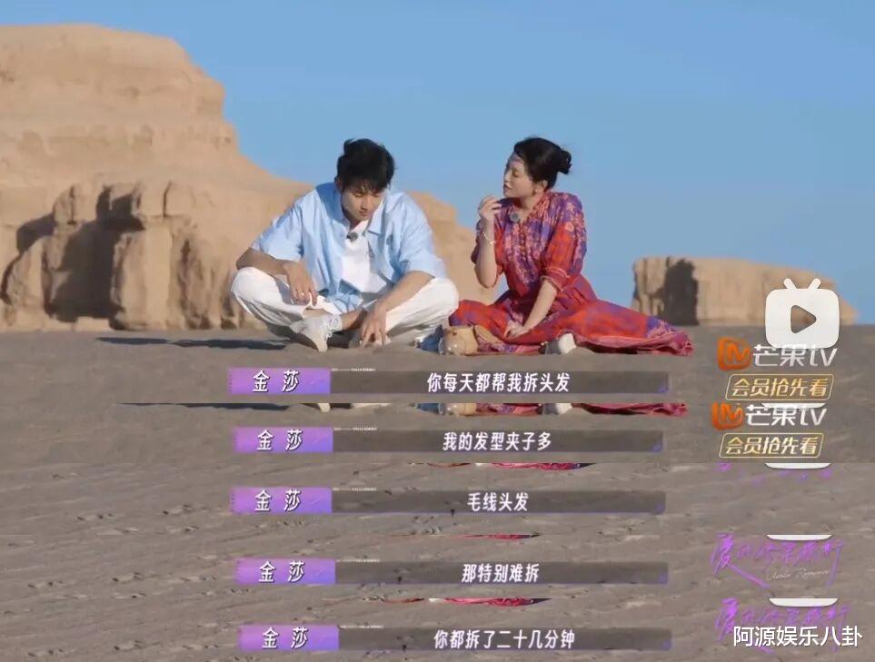 节目里金莎的发型好看但复杂。孙丞潇每天都会帮她拆头发,二十几分钟,这得多有耐心才能做到啊。