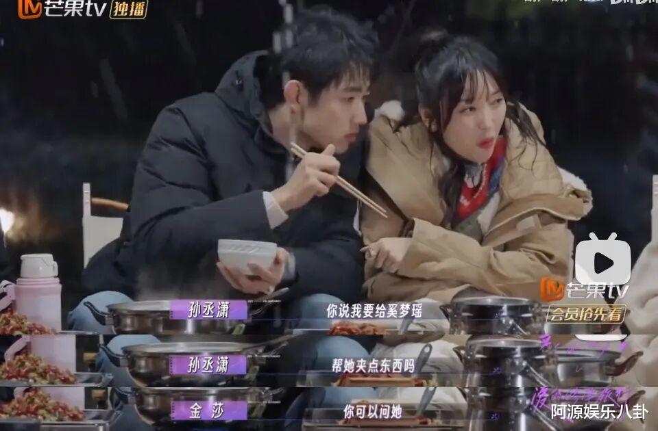 几组嘉宾坐一块吃饭,奚梦瑶坐他旁边。他可能觉得不照顾下女生显得不礼貌,但会在行动前先问金莎的意见。