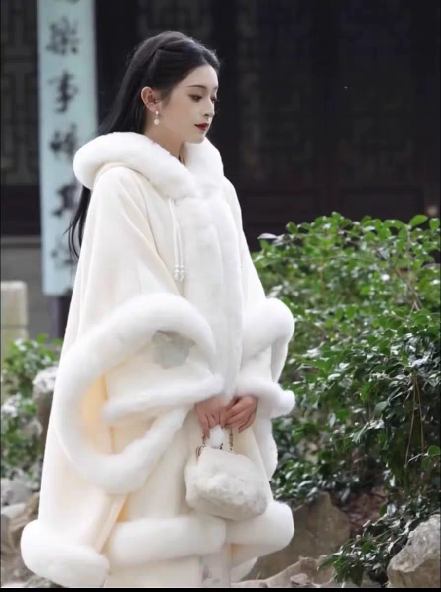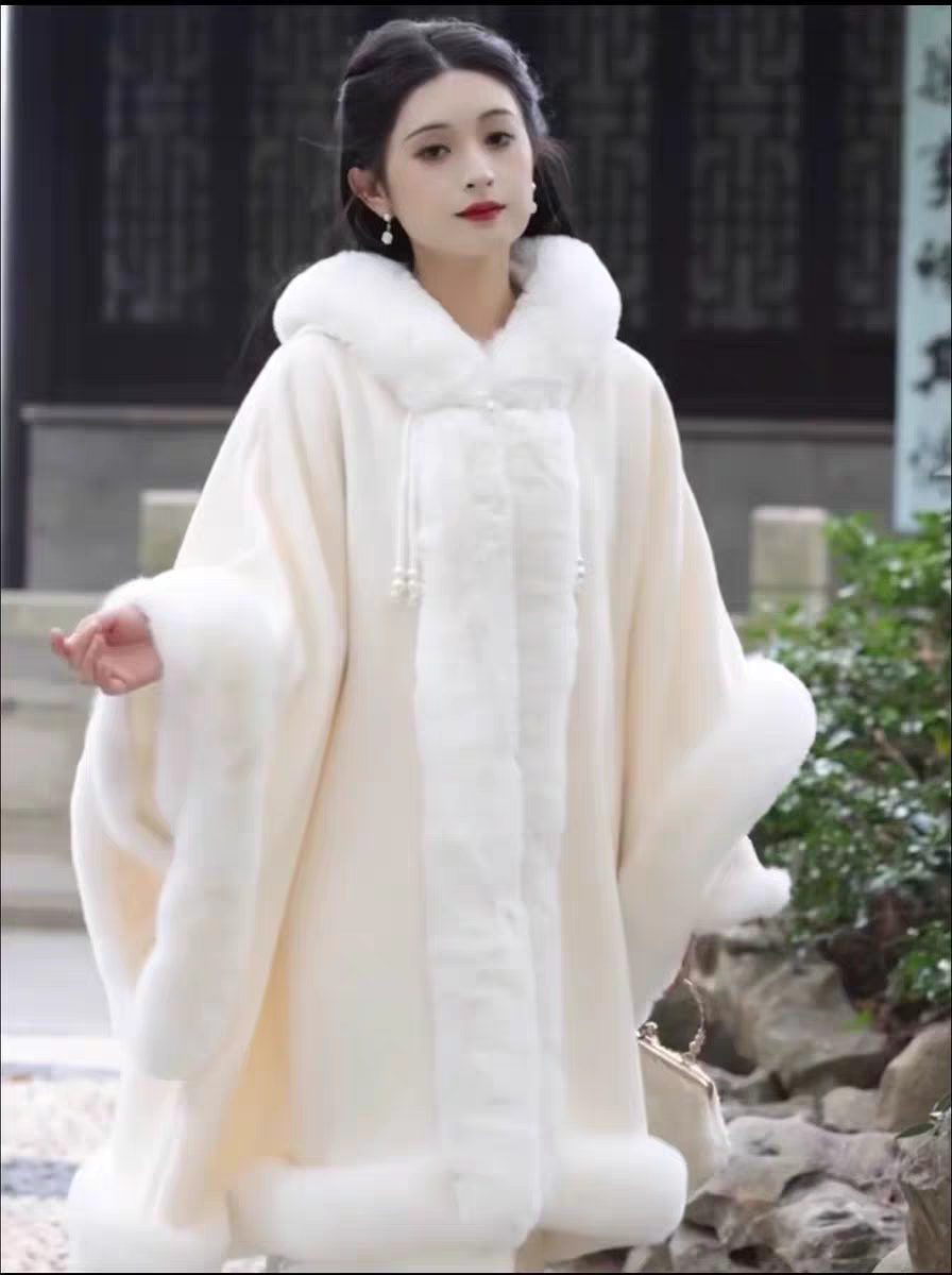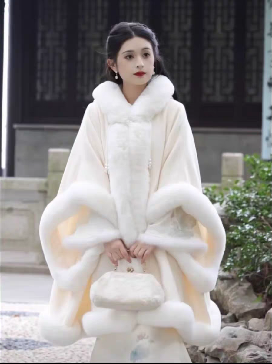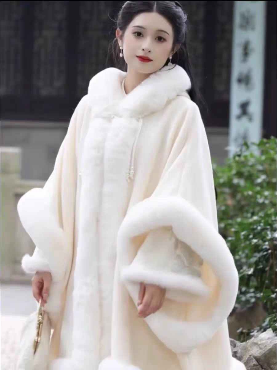 斗篷披肩新中式国风毛领披肩冬季保暖加厚纯色简约气质斗篷外套女