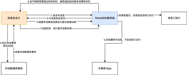 客服分配示例本地数据库分配分配成功后执行发送消息逻辑发送失败回滚本地事务检查本地事务@Slf4j@Componentpublic AcdMessageLocalTransactionChecker implements LocalTransactionChecker { @Autowired private IChatSessionService chatSessionService; /** * 回查本地事务,Broker回调Producer,将未结束的事务发给Producer,由Producer来再次决定事务是提交还是回滚 * * @param msg 消息 * @return {@link TransactionStatus} 事务状态, 包含提交事务、回滚事务、未知状态 */ @Override public TransactionStatus check(Message msg) { try { PushNoteMessage pushNoteMessage = MessageBodyUtils.convertByteArray2Object(msg.getBody(), PushNoteMessage.class); log.info("acdMessageLocalTransactionChecker, message: {}", JSON.toJSONString(pushNoteMessage)); if (pushNoteMessage == null) { return TransactionStatus.RollbackTransaction; } String body = pushNoteMessage.getBody(); if (StringUtils.isBlank(body)) { return TransactionStatus.RollbackTransaction; } AcdMessage acdMessage = JSON.parseObject(body, AcdMessage.class); if (acdMessage == null) { return TransactionStatus.RollbackTransaction; } boolean checkResult = chatSessionService.checkSessionState(acdMessage.getSessionId()); log.info("acdMessageLocalTransactionChecker, checkResult: {}, {}", acdMessage.getSessionId(), checkResult); return checkResult ? TransactionStatus.CommitTransaction : TransactionStatus.RollbackTransaction; } catch (Exception e) { log.error("acdMessageLocalTransactionChecker error"); } return TransactionStatus.RollbackTransaction; }}订单示例好的,让我举一个更具体的例子来说明 RocketMQ 事务消息的使用方法。