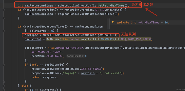 如果16次之后,消息还是没有消费成功,Broker端会将消息写入死信队列。