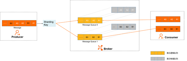 如何保证顺序分区顺序消息对于指定的一个Topic,所有消息根据Sharding Key进行区块分区,同一个分区内的消息按照严格的先进先出(FIFO)原则进行发布和消费。同一分区内的消息保证顺序,不同分区之间的消息顺序不做要求。