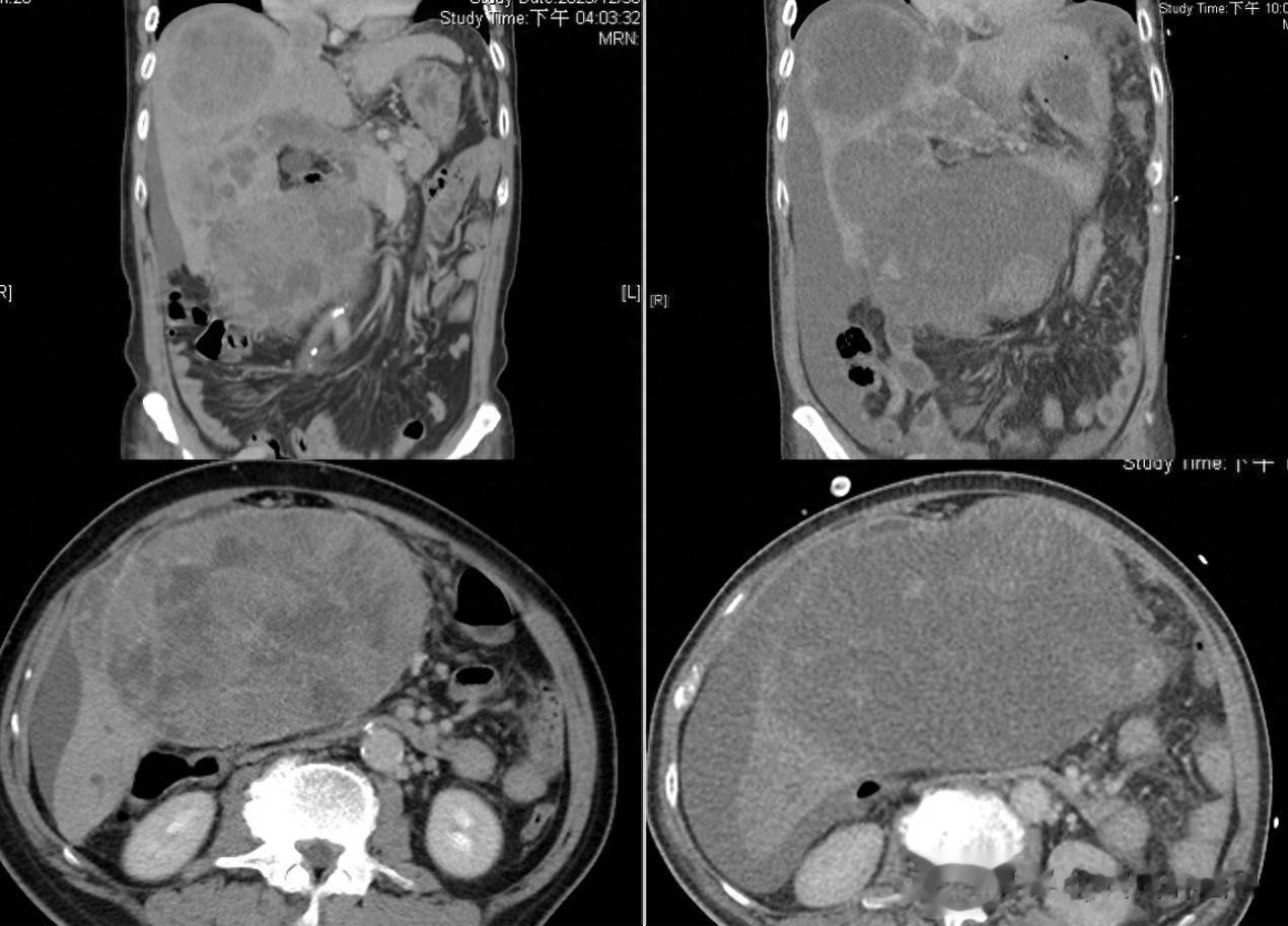 造成这位患者死亡的并非是治疗无效,反而是疗效“过好”。影像学检查中,患者原本巨大的肝脏肿块已经快速消退,呈“空心”状态。而让患者死亡的正是因为肿瘤快速消退所导致的肿瘤溶解综合征。