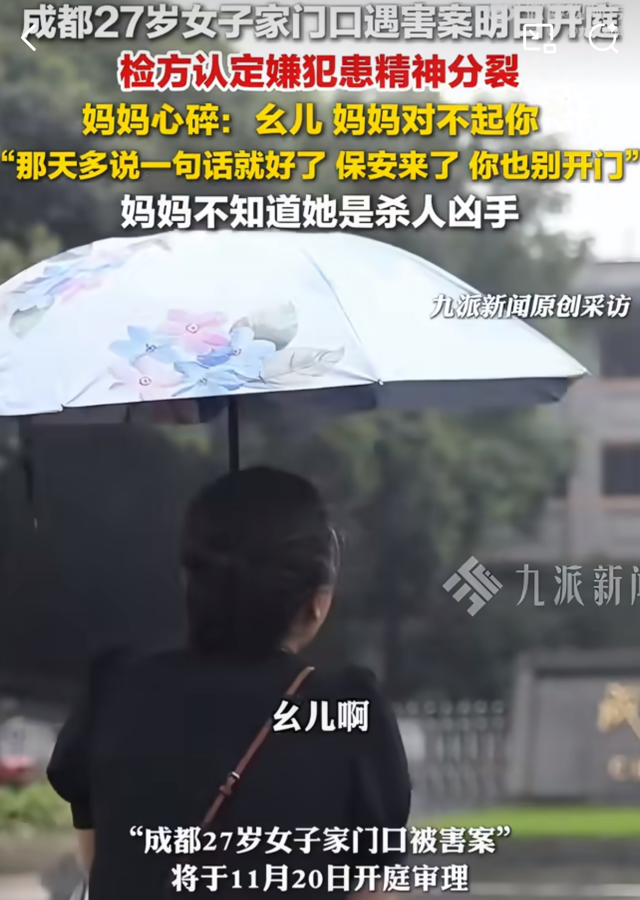 受害女子才27岁,本应是青春正好、享受生活的年纪,却在家门口遭遇了如此残忍的毒手,生命戛然而止。她的母亲,那个原本应该享受女儿陪伴的老人,如今却陷入了无尽的痛苦与自责之中。11月18日,记者从被害人母亲那里得知,案件即将在11月20日于成都市中级人民法院开庭审理。当记者跟着这位母亲来到她女儿曾经就读的成都外国语学校时,那揪心的一幕让人忍不住红了眼眶。母亲哭得撕心裂肺,嘴里不停地念叨着:“幺儿,妈妈对不起你,妈妈不晓得她是个杀人凶手,妈妈不知道,妈妈那天多说一句话就好了,保安来了你也不要开门啊。”那声音,充满了绝望与悔恨,仿佛每一个字都带着血,每一个字都像一把刀,割在人们的心上。