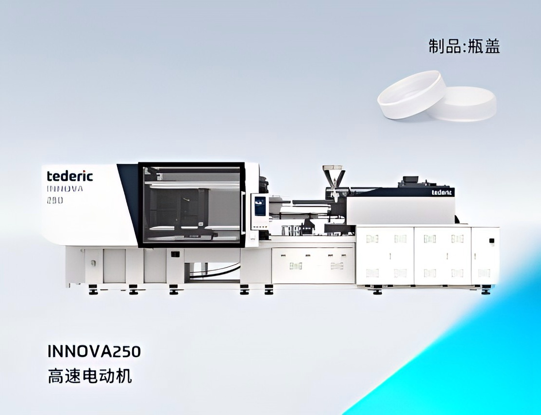 荣获2026年荣格技术创新奖的泰瑞第四代产品INNOVA250同样值得重点关注。该机型凝聚泰瑞中德技术成果,具备700 mm/s的超高射速,对标国际一流生产周期。在现场展示的瓶盖高速成型方案中,循环周期仅为2.9秒,充分展现了其在薄壁包装规模化生产中的高效实力。
