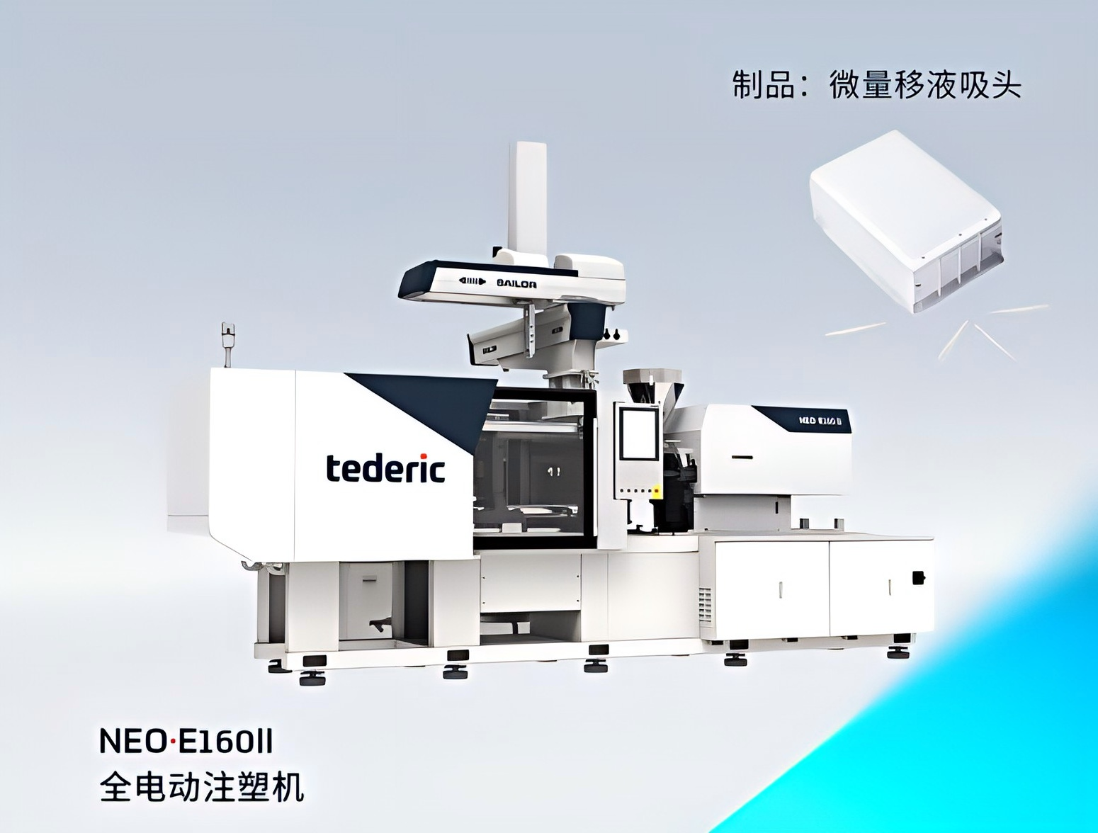 针对医疗行业对“洁净与可靠”的核心诉求,泰瑞基于NEO·E160II全电动注塑机推出高集成化移液吸头交钥匙方案。该方案实现384腔70μL吸头一站式交付,整个周期控制在7秒以内;专为移液吸头定制的全自动化产线实现整个过程无人介入,生产环境洁净度达ISO8级(十万级)PCR实验室标准,可有效降低微粒污染及人为干预风险,保障产品质量的稳定性与一致性,为医疗耗材制造提供稳定、可靠的洁净生产解决方案。