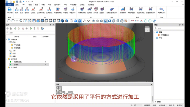 7. 现在刀路计算成功了,可以看到依然是采用了平行的方式进行加工。这是因为区域铣策略将选择的这几个面当做非陡峭区域去进行刀路生成。