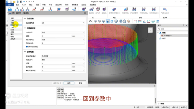 12. 现在非陡峭区域使用平行的方式进行加工,而陡峭区域使用等高的方式进行加工。需要注意的是,此时边界延伸将不会再生效。