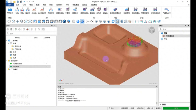 1. 在 3D 区面精修道路中有一个区域铣策略,下面使用区域铣对该铣台进行精加工。