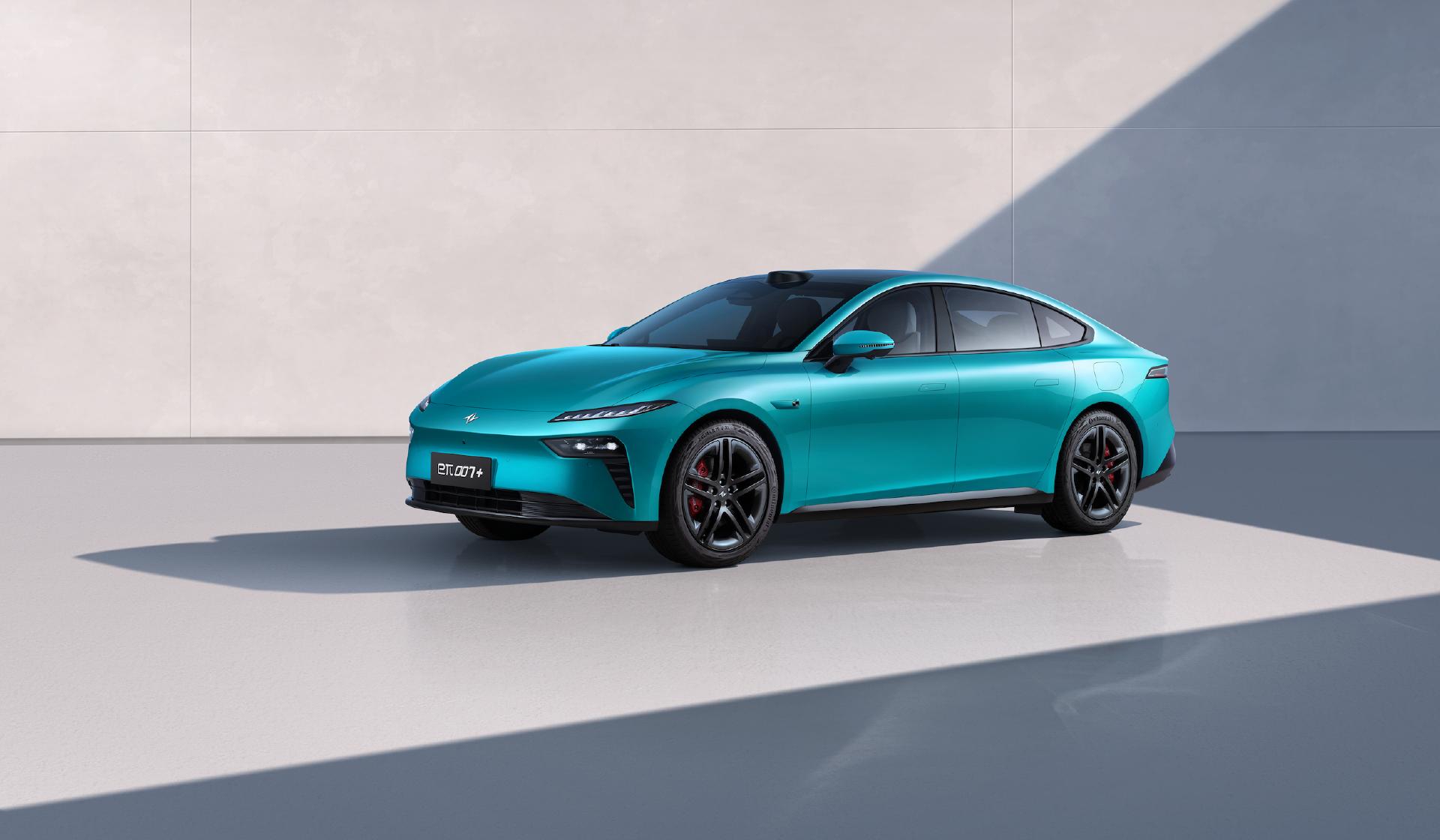 外观方面,eπ007+采用宽体低趴的溜背造型,车身拥有23处空气动力学优化部件,风阻系数为0.209,并新增苍穹灰、港湾蓝两款车色。配置上提供随速电动尾翼、电动掀背尾门、蝶影光毯投影灯等。内饰采用超纤柔类麂皮绒包覆,配备真皮加热方向盘、云感亲肌座椅、WANOS 2.0全景声音响、智能香氛及64色氛围灯。