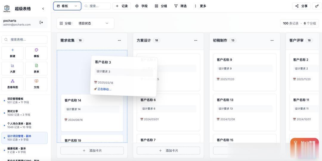 研究了国内外主流的多维表格平台,借鉴了很多产品上的设计,下面我来和大家分享一下pxcharts超级表格的功能亮点。1. 多表格高效管理