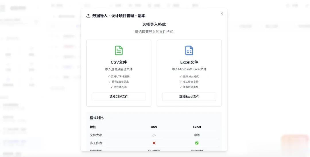目前我们支持了CSV,EXCEL的文件导入,并能一键导出为CSV,EXCEL,HTML格式的文件,具体总结如下:CSV 导入智能字段类型检测数据预览和字段映射错误处理和部分导入Excel 导入支持 .xlsx 格式多工作表选择数据类型保持多格式导出CSV 格式导出Excel 格式导出 (.xls/.xlsx)HTML 网页格式导出6.开箱即用的AI分析功能