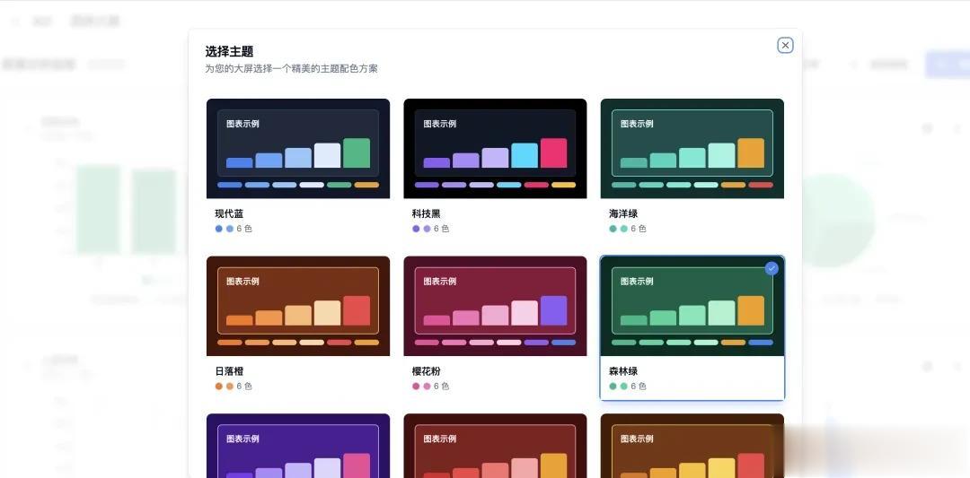 同时我们还能一键切换大屏的主题,让我们的仪表盘更有个性: