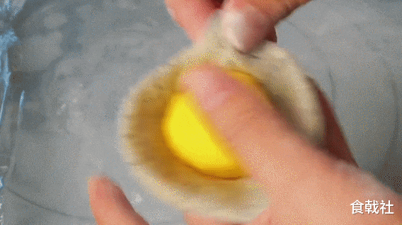 9.然后从第一个揉好的面剂开始,给它擀成一个边缘薄中间后的皮儿,放上我们准备好的奶黄馅。