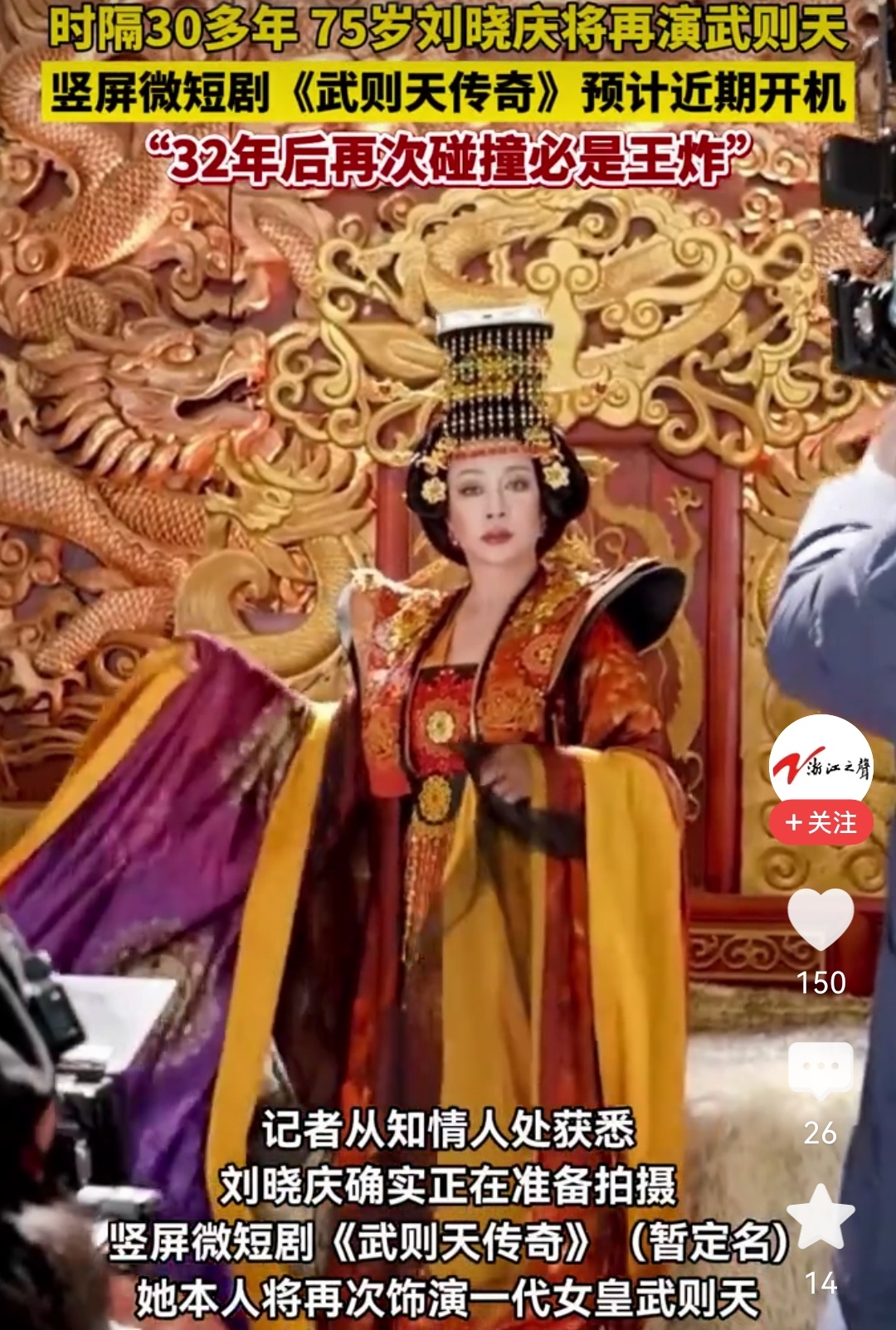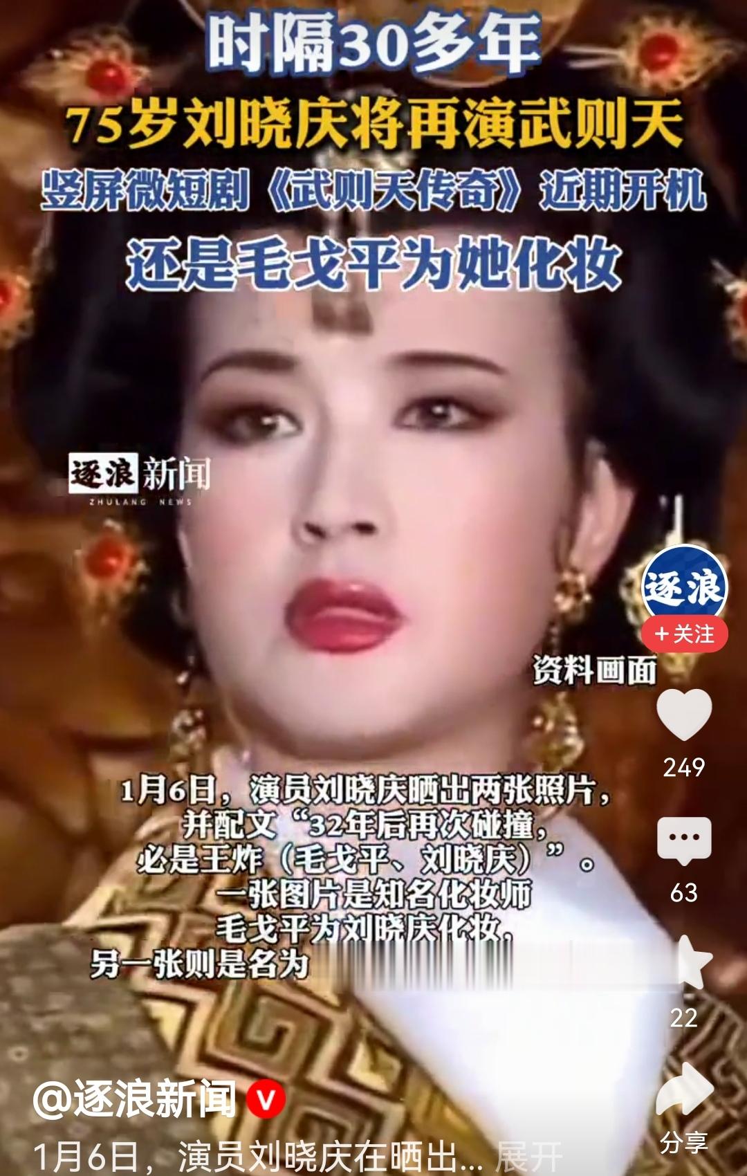 说真的,刷到刘晓庆官宣第五次演武则天的消息,我当场愣了三秒。75岁啊,放别人身上早该含饴弄孙享清福,她倒好,直接拉着老搭档毛戈平杀进微短剧赛道,一句“32年后再次碰撞,必是王炸”,硬是把话题热度冲上亿级。咱就想问,这到底是情怀杀疯了,还是老戏骨想在新赛道再创神话?