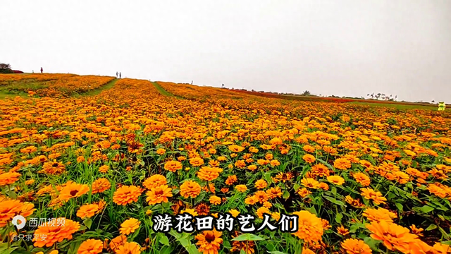 游花田的艺人们,一个个犹如青年,生龙活虎,尽情的疯狂。再不疯狂我们就老了,他们在鲜花盛开,绿叶铺地的花丛中。美女们赏花的状态在摄影师的镜头下。