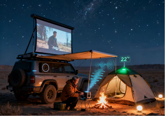 新疆的自驾爱好者老张,在戈壁滩展开车载帐篷:车顶弹出3米投影幕布,车载音响模拟篝火噼啪声,智能温控系统维持22℃恒温。更绝的是,车底的生态监测仪自动分析土壤湿度,提醒“此处适合种植梭梭树”——旅行,变成了一场移动的环保行动。