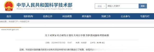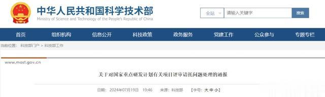 7月19日,科技部在官网发布了《关于对国家重点研发计划有关项目评审请托问题处理的通报》、《关于对国家重点研发计划有关项目