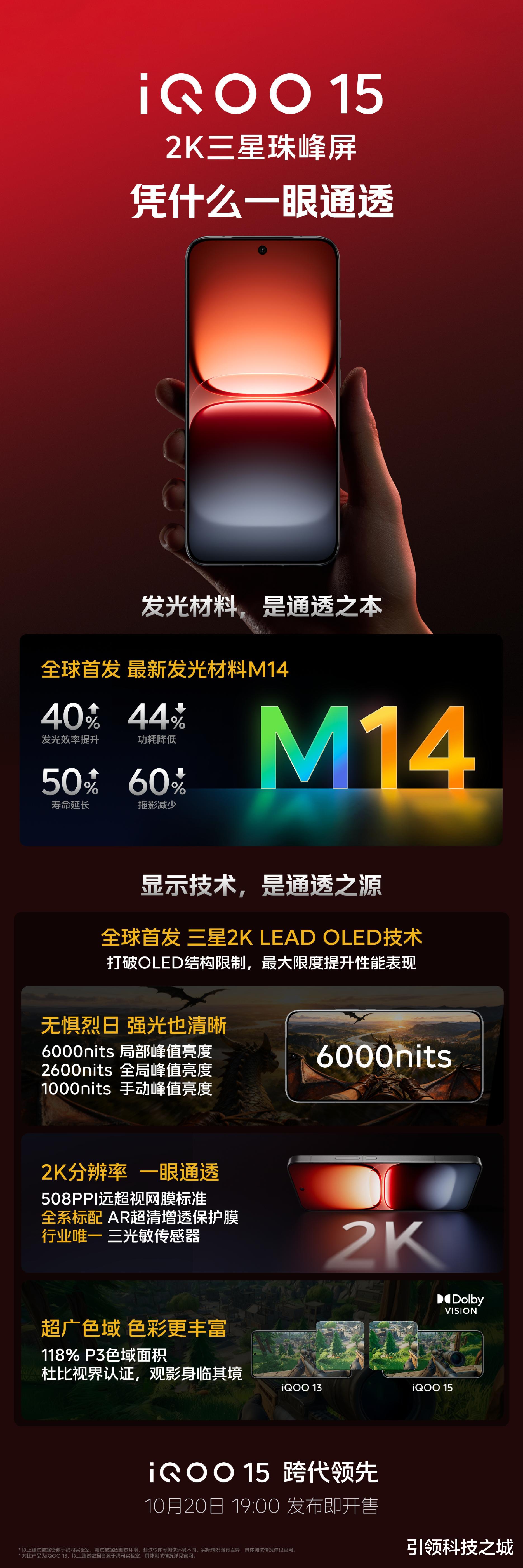 一块出色的屏幕是我们感知世界的重要窗口。好的手机屏幕一定不会差!今晚发布的iQOO 15就搭载了2K三星珠峰屏,正是这样