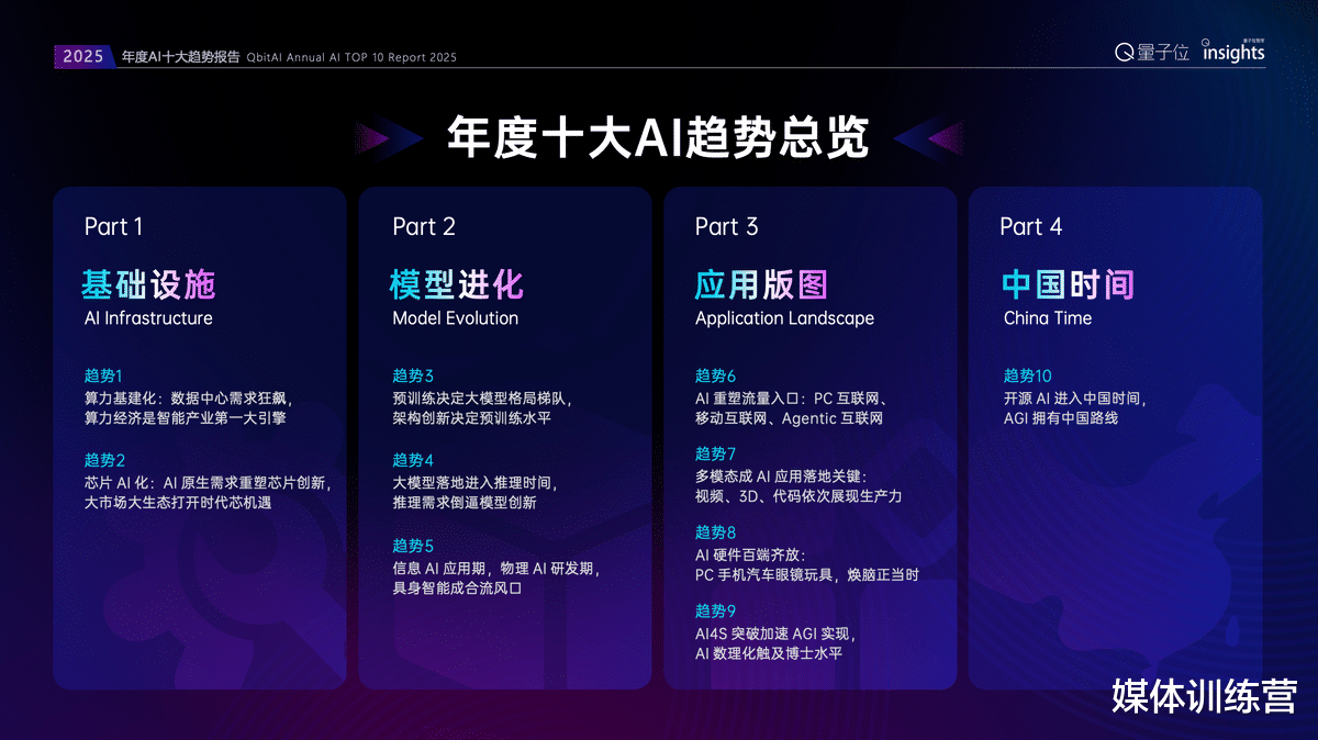 媒体训练营讯,北京,12月10日消息,《2025年度AI十大趋势报告》在“MEET2026智能未来大会”上正式发布。