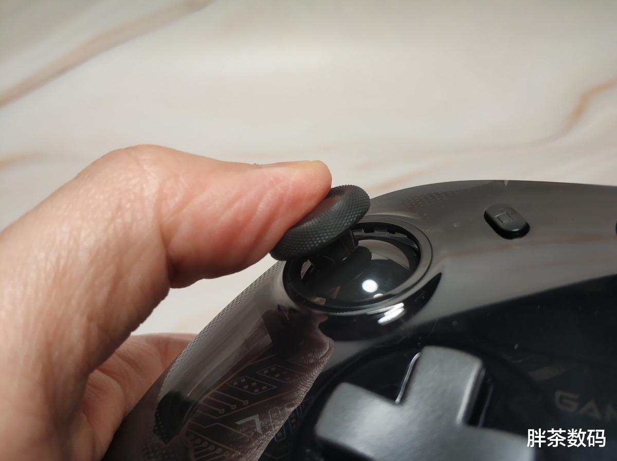 盖世小鸡影舞者游戏手柄采用了专属定制的霍尔摇杆,非常的耐用,通过非接接触电磁感应,操作精准无误差,搭配POM耐磨环,能避免物理接触磨损。上方圆形X标识的是HOME键,配有环状光圈,下方还有视图键、分享键、菜单键。(https://u.jd.com/UuIyaQP)
