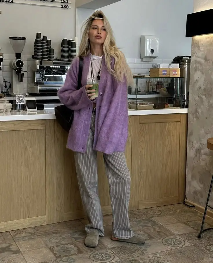 冷调灰色遇上柔调紫色,就像给穿搭加了层高级磨皮。