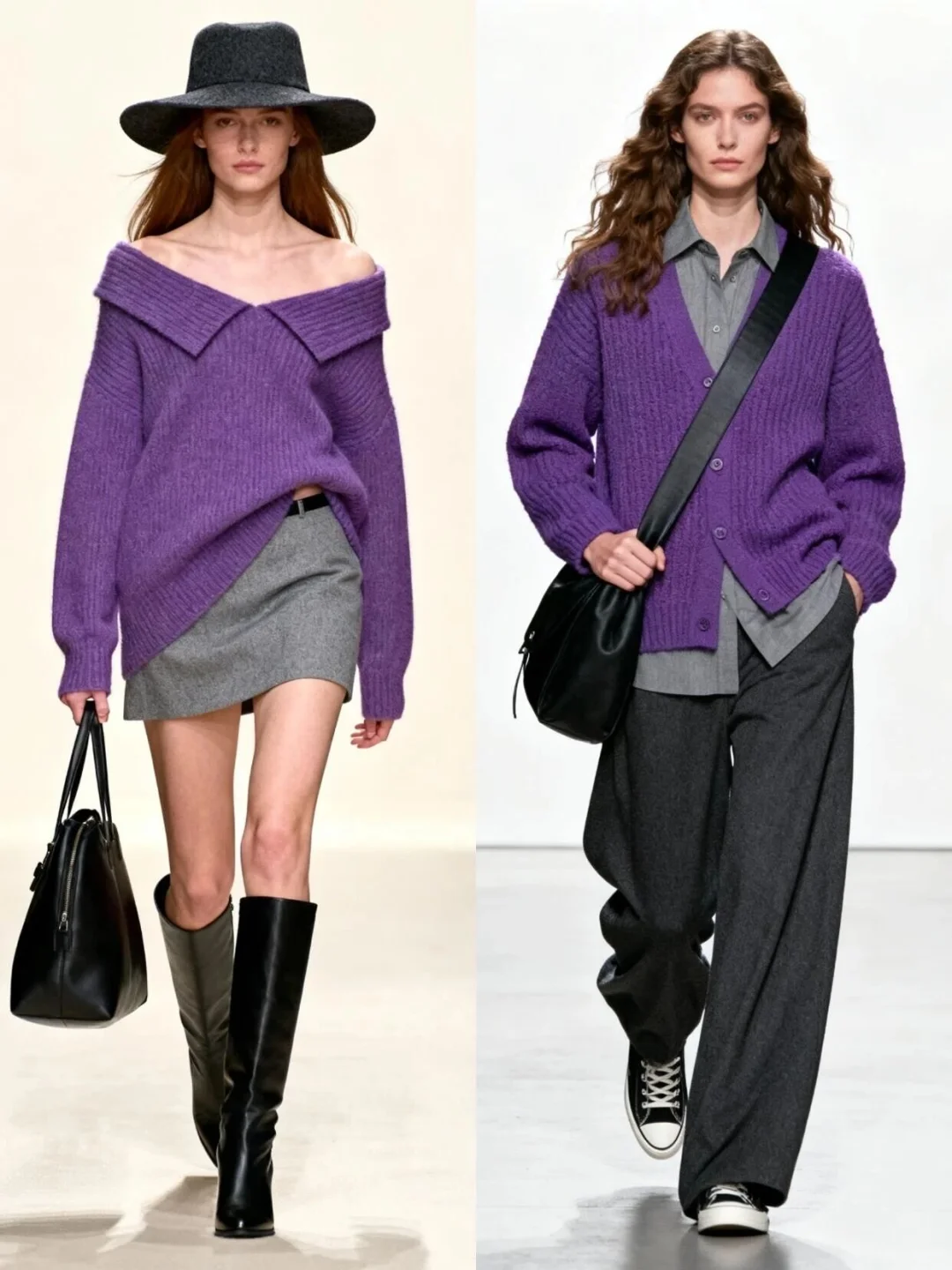 秋冬的街头从不缺基础色,却总有人能靠一组配色杀出重围,那就是灰色与紫色的碰撞。它不像黑白那样寡淡,不似红蓝那般张扬,自带一种“不费力的高级感”,温柔中藏着底气,还能精准踩中显白痛点,堪称跨季节、跨风格的万能王炸组合。