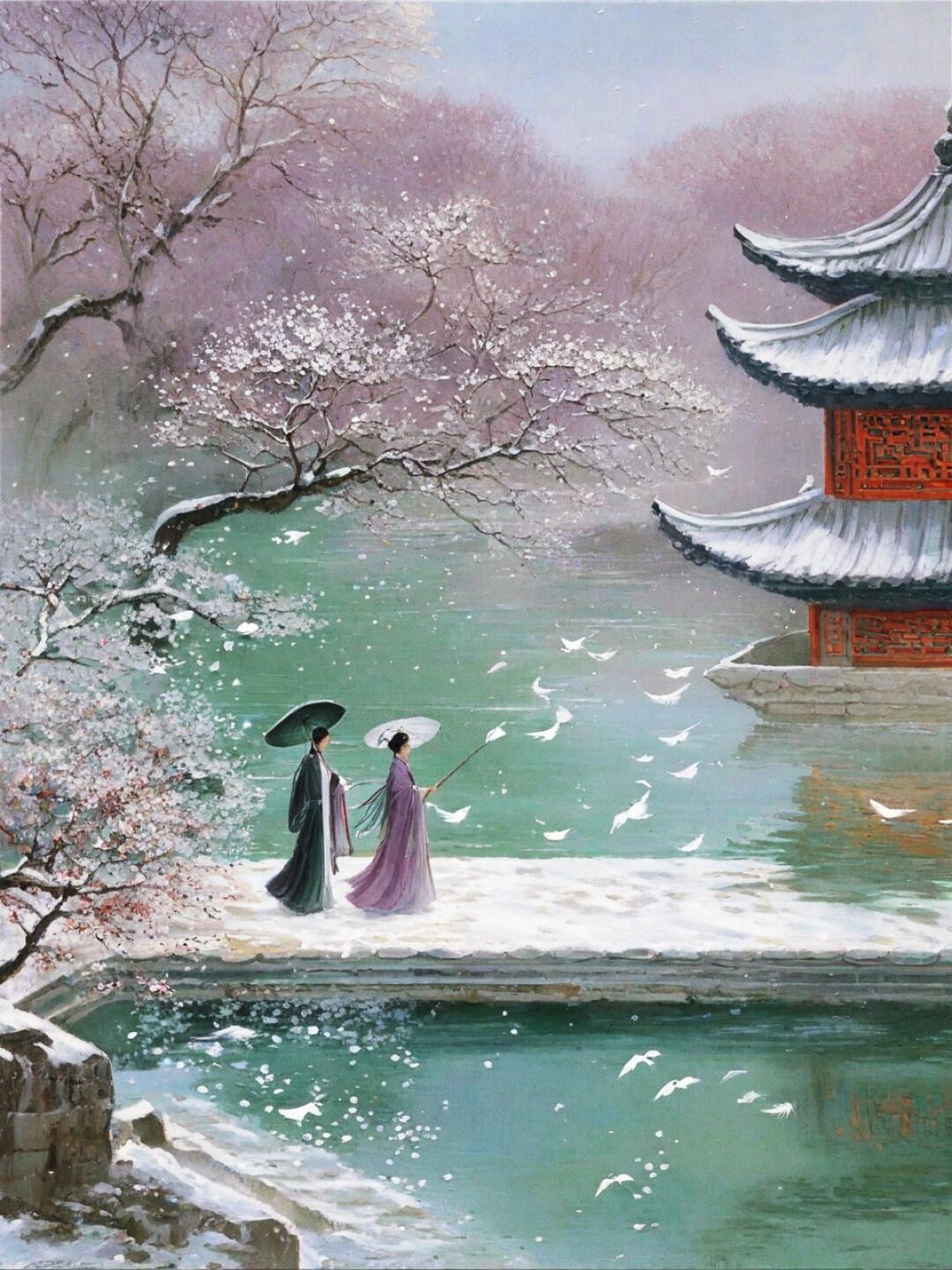 张祜一辈子写了那么多冷清的诗、孤独的诗、失意的诗、嘲讽的诗。可他在这首诗里展示了另一面:他也能写盛大。他也能写到极致的热闹,极致的辉煌,极致的人间烟火。千门万灯、三百舞伎、一时天上著词声,每一句都在往大了写,往亮了写,往高了推。