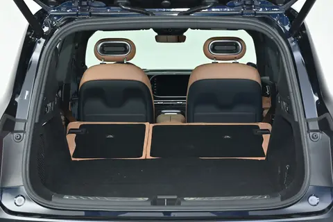 紧接着就迫不及待的坐进车内感受了一下,我们直接使用手机蓝牙钥匙来打开车门就可以了。该车的长宽高分别为4705mm,1920mm,1710mm,轴距达到了2900mm,内部空间十分宽敞。我和我另外两个朋友的身高都是180cm,坐进去丝毫不会感觉到拥挤,腿部大约还能空出两个拳头的距离。后备箱的容积为625L,必要的时候我们可以将后排的座椅40:60放倒,最终可以提升到1525L,逢年过节走亲访友或者和家人出去旅游的话也不用担心行李箱没地方放。车内的豪华度和舒适度还是挺在线的,座椅采用仿皮和真皮材质包裹而成,手感很细腻。前排贴心的给到了零重力座椅,不仅能够更贴合我们的身体曲线,还可以打开腿托来缓解腿部压力。前后排都是支持多向调节的,出远门乘车时间久了感觉腰部不舒服的话可以适当的调整一下。
